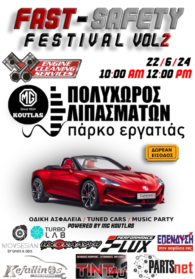 Το Κερατσίνι μας Μετρά αντίστροφα για να υποδεχτεί το FAST & SAFETY Festival v2 Powered by MG koutlas 22 ΙΟΥΝΊΟΥ 2024 Και ώρα 10:00 βάζουμε τους Κινητήρες μας Εμπρός! Start your Engine Now! 🟡 ΠΟΛΥΧΩΡΟΣ ΛΙΠΑΣΜΑΤΩΝ ΚΕΡΑΤΣΙΝΊΟΥ ΔΡΑΠΕΤΣΏΝΑΣ ΜΕΓΑΛΟ ΘΕΑΤΡΟ ( Είσοδος από υδατοπυργο )