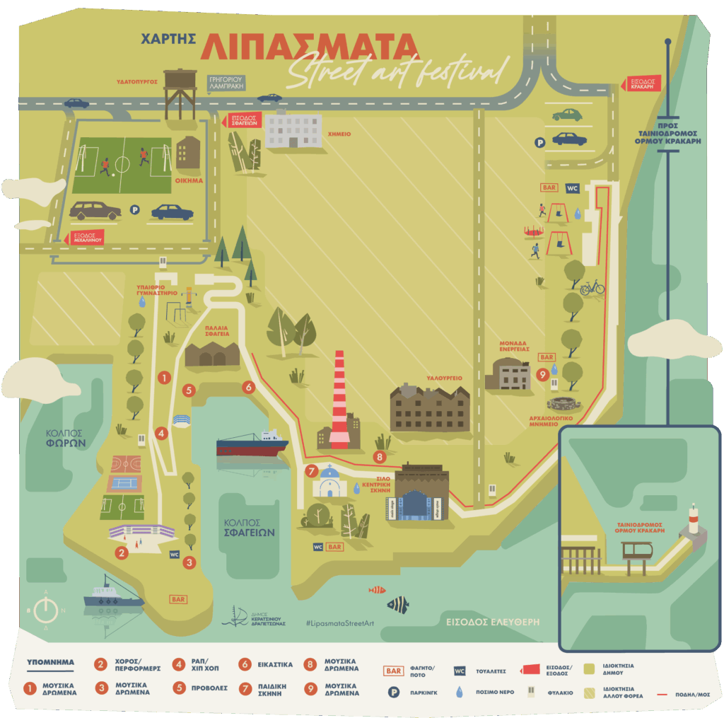 Τα όνειρα της πόλης μας, που ασφυκτιά ακόμα και σήμερα από την ασυδοσία των γειτονικών βιομηχανικών εγκαταστάσεων, αλλά έχει το μεράκι να κάνει την διαμαρτυρία της δημιουργία, να πιάνει τα «πινέλα και τα χρώματα» και να μεταμορφώνει την παλιά γκρίζα βιομηχανική ζώνη σε μία εμβληματική τοποθεσία δίπλα στη θάλασσα «γεμάτη» νότες, χρώματα, εικόνες και εμπειρίες.